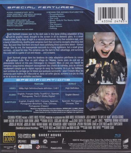 This is the story of an isolated Alaskan town that is plunged into darkness for a month each year when the sun sinks below the horizon. As the last rays of light fade, the town is attacked by a bloodthirsty gang of vampires bent on an uninterrupted orgy of destruction. Only the small town's husband-and-wife Sheriff team stand between the survivors and certain destruction.