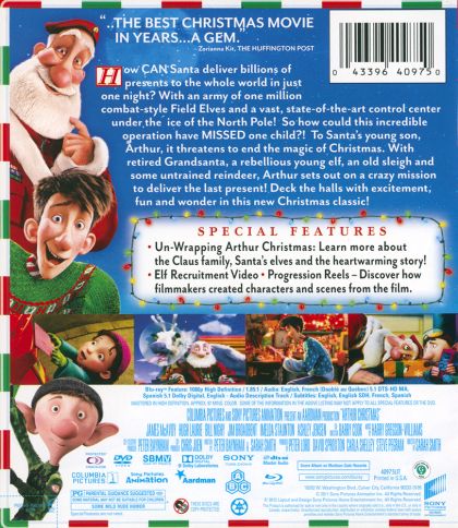 For hundreds of years, the Claus family has delegated the title "Santa" to a chosen few of its members, which can be passed down upon retirement. Each Christmas, Santa and his vast army of highly trained elves produce gifts and distribute them around the world in a one-night high-tech operation. However, when one of 600 million children to receive a gift from Santa on Christmas Eve is missed, it is deemed ‘acceptable’ to all but one—Arthur Claus, the current Santa’s misfit son deemed ineligible for the title, who executes an unauthorised rookie mission to get the last present halfway around the globe before dawn on Christmas morning.