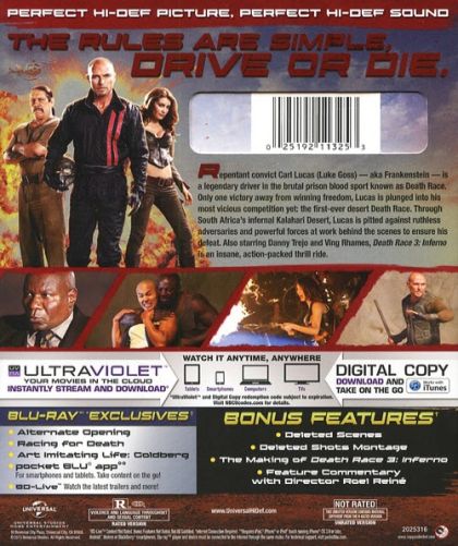 Carl Lucas / Frankenstein has won four of his races and needs to win one more to win his freedom. Before his final race, Lucas and his team, car and all, are transferred to another prison where they will compete in a Death Race in the desert. Also, at the same time, Ceaser runs into a marketer who wants to franchise the Death Race program.
