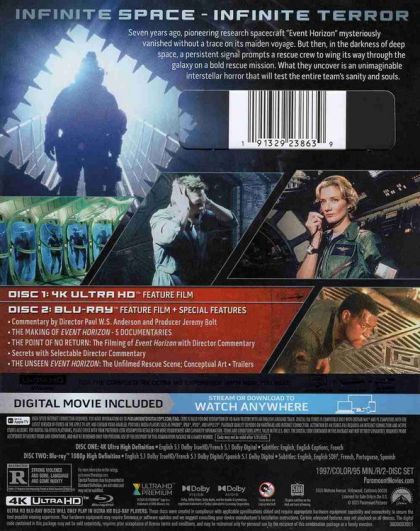 In 2047, a group of astronauts are sent to investigate and salvage the starship Event Horizon which disappeared mysteriously seven years before on its maiden voyage. However, it soon becomes evident that something sinister resides in its corridors.