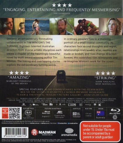 Seventeen talented Australian directors from diverse artistic disciplines each create a chapter of the hauntingly beautiful novel by multi award-winning author Tim Winton. The linking and overlapping stories explore the extraordinary turning points in ordinary people’s lives in a stunning portrait of a small coastal community. As characters face second thoughts and regret, relationships irretrievably alter, resolves are made or broken, and lives change direction forever.