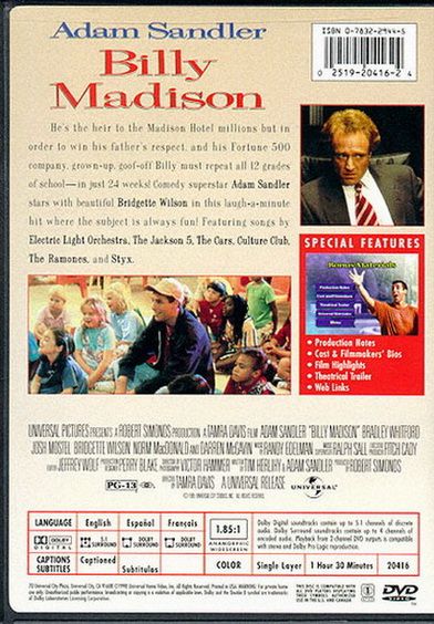 Billy Madison is the 27 year-old son of Bryan Madison, a very rich man who has made his living in the hotel industry. Billy stands to inherit his father's empire, but only if he can make it through all 12 grades, 2 weeks per grade, to prove that he has what it takes to run the family business.