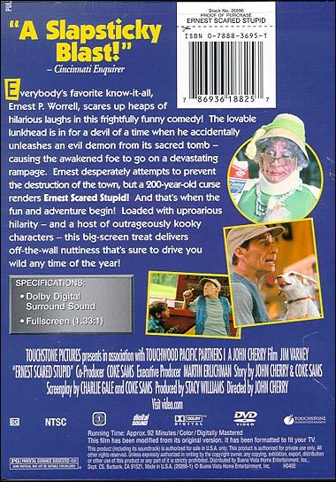 Well-intentioned, eternally bumbling Ernest P. Worrell accidentally releases an evil demon from its sacred tomb. As the demon flexes its power and goes on a ruinous rampage, good-guy Ernest tries to step in to save the town from mass destruction. Trouble is, a 200-year-old curse has scared Ernest stupid, and that means hilarity all around! So, kick back and let the laugh-ridden adventures begin.