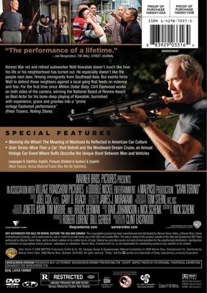 Disgruntled Korean War veteran Walt Kowalski sets out to reform his neighbor, Thao Lor, a Hmong teenager who tried to steal Kowalski's prized possession: a 1972 Gran Torino.