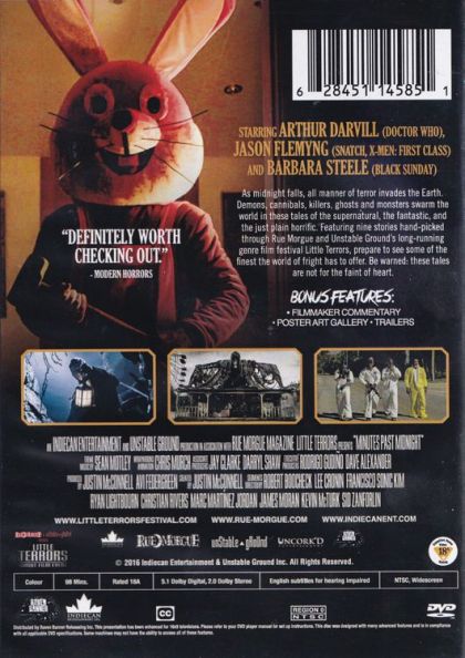 As midnight falls, all manner of terror invades the Earth. Demons, cannibals, killers, ghosts and monsters swarm the world in these tales of the supernatural, the fantastic, and the just plain horrific. Featuring nine stories hand-picked through Rue Morgue and Unstable Ground's long-running genre film festival Little Terrors, prepare to see some of the finest the world of fright has to offer. Be warned: these tales are not for the faint of heart.