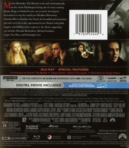 Skeptical young detective Ichabod Crane gets transferred to the hamlet of Sleepy Hollow, New York, where he is tasked with investigating the decapitations of three people – murders the townsfolk attribute to a legendary specter, The Headless Horseman.