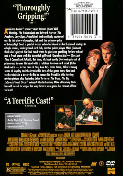 Poker addict Mike McDermott knows the game inside out, but loses his money one night in a game to Russian-American gangster Teddy KGB. Promising his partner Jo he'll give up, he meets up with best friend Lester 'Worm' Murphy, just out of prison and owing lots of money to the wrong kind of people. McDermott becomes his co-guarantor and now there's only one way to raise the money, the pair have to get back into the game.