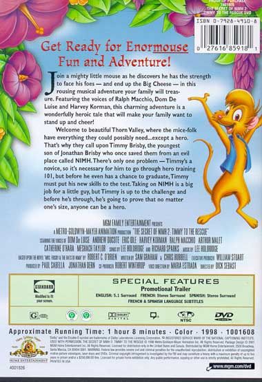 The rats and mice, made intellectually superior in the original Secret of N.I.M.H., return to Thorn Valley to groom their destined leader - young Timmy Brisby.