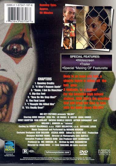 Deep in an inner city hell, a ghastly figure is killing off the bad guys. A vigilante, or a demon? For the beautiful high school student, Jada, that's the question that will bring her face to face with the killer clown Killjoy.