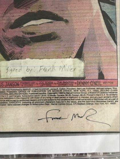 Frank Miller verified signature (on 1st panel)