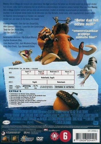 Diego, Manny and Sid return in this sequel to the hit animated movie Ice Age. This time around, the deep freeze is over, and the ice-covered earth is starting to melt, which will destroy the trio's cherished valley. The impending disaster prompts them to reunite and warn all the other beasts about the desperate situation.