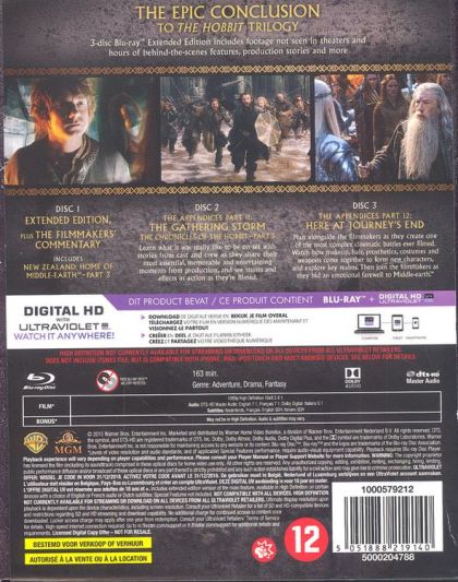 Following Smaug's attack on Laketown, Bilbo and the dwarves try to defend Erebor's mountain of treasure from others who claim it: the men of the ruined Laketown and the elves of Mirkwood. Meanwhile an army of Orcs led by Azog the Defiler is marching on Erebor, fueled by the rise of the dark lord Sauron. Dwarves, elves and men must unite, and the hope for Middle-Earth falls into Bilbo's hands.