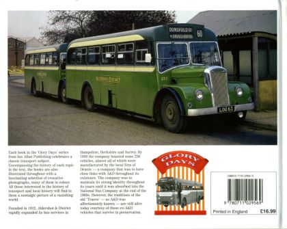 Although the first services around Aldershot date back to the early 20th century, it was not until 1912 that Aldershot & District formally came into existence with the involvement of the British Automobile Traction Co Ltd with the earlier Aldershot & Farnborough Motor Omnibus Co Ltd. From these small beginnings, Aldershot & District expanded rapidly, acquiring some routes before the start of World War 1 from the London & South Western Railway. Post-1919 the company continued to grow, aided by the 1930 Road Traffic Act, which introduced formal licensing of services. By this date the company's fleet had expanded to some 236 vehicles, all of them manufactured by the local firm of Dennis - a company that was to have close links with A&D throughout its existence. The company, which became a subsidiary of British Electric Traction, passed into the hands of the National Bus Company following Nationalisation and was to be merged with local rival Thames Valley to form a new company called Alder Valley. However, the traditions of the old 'Tracco' - as A&D was affectionately known - are still alive courtesy of the large numbers of ex-A&D vehicles that survive in preservation.One of the country's leading single operator societies is the Aldershot & District Bus Interest Group, and the group's membership has co-operated in the production of this new 'Glory Days' book. It provides a history of the company from the earliest days, through to its ultimate disappearance with the corporate structure of the NBC. Among topics covered in depth are the company's close relationship with Dennis and its involvement with the military in and around Aldershot. The comprehensive text is supplement by a variety of colour and black and white photographs showing the range of vehicles and services provided by the company in the period up to its final demise.