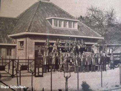 ‘O oude brandweerkazerne’ was de titel van het afscheidslied, gezongen door het Maarssense brandweerkoor ‘Bluss’, want na 65 jaar, van 1939 tot 2003, verlieten de mannen hun brandweerkazerne aan de Gaslaan om aan de Binnenweg een nieuw gebouw te betrekken. 1). Vóór de bouw van de kazerne aan de Gaslaan in 1939 was de brandweer gehuisvest in het brandspuithuisje in de Breedstraat, nu de Wereldwinkel. Een afbeelding in ‘Utrecht in Woord en Beeld’ uit 1926 toont de manschappen van de vrijwillige brandweer voor het brandspuithuisje en tijdens een demonstratie met de eerste Maarssense ‘automobielbrandspuit’.