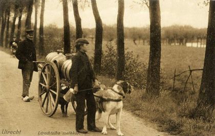 Het Reglement van Politie van de gemeente Zuilen uit 1857 rept met geen woord over trekhonden. Toch is er in de navolgende jaren het een en ander veranderd. Het ‘Brievenboek justitiezaken’ van de gemeente Maarsseveen over de periode 1890-1904 wemelt van de processen-verbaal over verkeerd gebruik van trekhonden. 1) Zo kreeg in 1901 G. van Schaik uit Maarssen een proces-verbaal omdat zijn honden ‘niet van lederen halters waren voorzien’. Duidelijk is dat er wel aandacht was voor het paard van de kleine neringdoende. Wellicht dat deze ‘grotere aandacht veroorzaakt is door het vanaf 1896 geldende ‘Reglement op het rijden met hondenkarren in de Provincie Utrecht’, waarin eisen voor houders, karren en honden werden opgenomen. Hierin staat in Artikel 6 uitdrukkelijk vermeld dat de bestuurders of geleiders van deze hondenkarren zich in de kom van de gemeente ’niet op het voertuig mogen plaatsen, maar daarnaast moeten gaan’. 2) Op dit artikel kom ik hieronder nog terug vanwege de uitzonderingen.