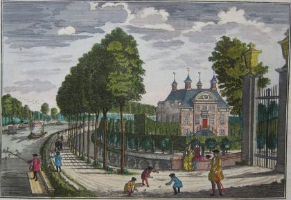 Het huis wordt, aldus het veilingbiljet, aan de zijde van de grote vijver betreden via een ‘Capitaale Welgeordineerde (goed ontworpen, volgens goede regels) Dubbele Stoep, van Blaauw Arduin-Steen’ aan weerszijden voorzien van ijzeren leuningen. Op de plattegrond staat hier vermeld: ‘Syde naar de Groot(e) Vyver’. De voorkant van het huis, de entreezijde, lag dus - gezien de ligging van de vijver - aan de ‘landzijde’, niet aan de kant van de Vecht.