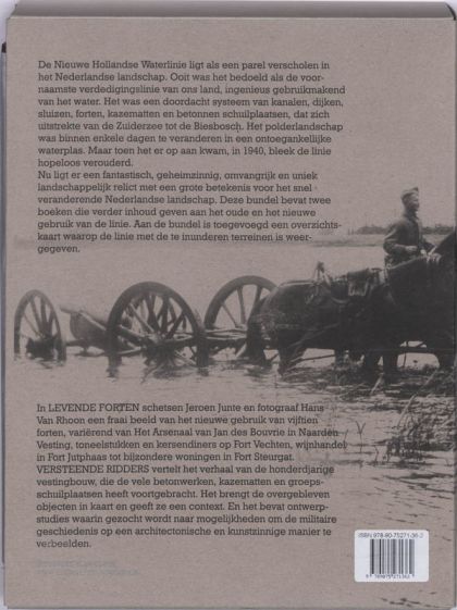 De Nieuwe Hollandse Waterlinie ligt als een parel verscholen in het Nederlandse landschap. Ooit bedoeld als de voornaamste verdediging van ons land, ingenieus gebruikmakend van het water. Het was een doordacht systeem van kanalen, dijken, sluizen, forten, kazematten en betonnen schuilplaatsen, dat zich uitstrekte van de Zuiderzee tot de Biesbosch. Het polderlandschap kon binnen enkele dagen worden veranderd in een waterplas, die het terrein verraderlijk en voor de vijand onbegaanbaar maakte. Deze bundel bevat twee boeken die verder inhoud geven aan het oude en het nieuwe gebruik van de linie. In "Levende forten" schetsen Jeroen Junte en fotograaf Hans Van Rhoon een fraai beeld van het nieuwe gebruik van vijftien forten, van Het Arsenaal van Jan des Bouvries in Naarden Vesting tot de woningen in Fort Steurgat. "Versteende ridders" vertelt het verhaal van de honderdjarige vestingbouw, die de vele betonwerken, kazematten en groepsschuilplaatsen heeft voortgebracht. Het brengt de overgebleven objecten in kaart. Daarnaast bevat het ontwerpstudies.