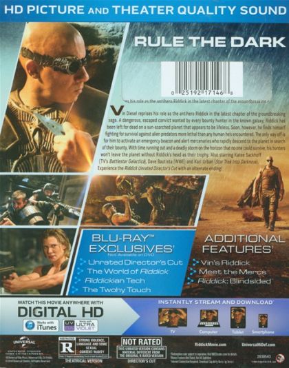 Betrayed by his own kind and left for dead on a desolate planet, Riddick fights for survival against alien predators and becomes more powerful and dangerous than ever before. Soon bounty hunters from throughout the galaxy descend on Riddick only to find themselves pawns in his greater scheme for revenge. With his enemies right where he wants them, Riddick unleashes a vicious attack of vengeance before returning to his home planet of Furya to save it from destruction.