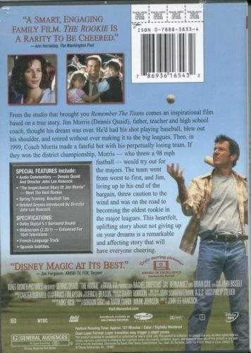 Jim Morris never made it out of the minor leagues before a shoulder injury ended his pitching career twelve years ago. Now a married-with-children high-school chemistry teacher and baseball coach in Texas, Jim's team makes a deal with him: if they win the district championship, Jim will try out with a major-league organization. The bet proves incentive enough for the team, and they go from worst to first, making it to state for the first time in the history of the school. Jim, forced to live up to his end of the deal, is nearly laughed off the try-out field--until he gets onto the mound, where he confounds the scouts (and himself) by clocking successive 98 mph fastballs, good enough for a minor-league contract with the Tampa Bay Devil Rays. Jim's still got a lot of pitches to throw before he makes it to The Show, but with his big-league dreams revived, there's no telling where he could go.