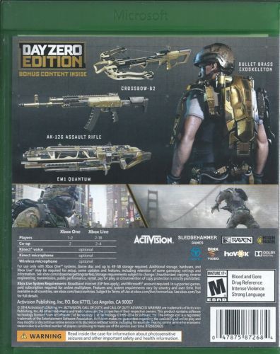 Developed by Sledgehammer Games (co-developers of Call of Duty®: Modern Warfare® 3), harnesses the first three-year, all next-gen development cycle in franchise history. Call of Duty®: Advanced Warfare envisions the powerful battlegrounds of the future, where both technology and tactic have evolved to usher in a new era of combat for the franchise. Delivering a stunning performance, Academy Award® winning actor Kevin Spacey stars as Jonathan Irons - one of the most powerful men in the world - shaping this chilling vision of the future of war.