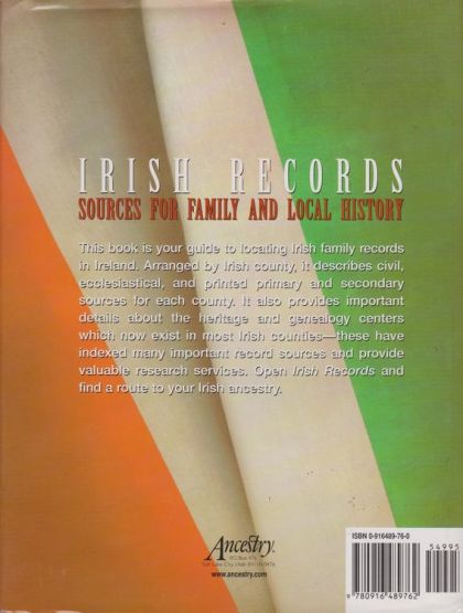 The best source for tracking down records in Ireland. Irish Records is your guide to locating Irish genealogical sources in Ireland. For the period of greatest interest to family history researchers -- the late eighteenth and early to middle nineteenth centuries -- Irish family records are sparse. However, sources are available -- civil registers, censuses, land records, church records -- and Irish Records tells you where to find them. Irish Records is arranged by Irish count and describes civil, ecclesiastical, and printed primary and secondary sources for each county. It also provides important details about the heritage and genealogy centers which now exist in most Irish counties. These centers have indexed many important sources and provide valuable research services that can help you discover your Irish ancestry. Includes details on Presbyterian, Church of Ireland, and Catholic records. Provides a list of Irish heritage centers"" and indicates sources indexed by each. ""