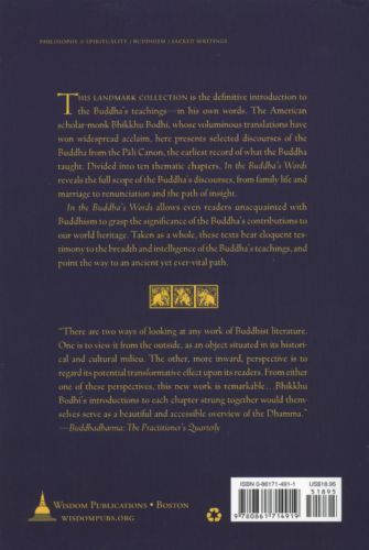 This landmark collection is the definitive introduction to the Buddha's teachings - in his own words. The American scholar-monk Bhikkhu Bodhi, whose voluminous translations have won widespread acclaim, here presents selected discourses of the Buddha from the Pali Canon, the earliest record of what the Buddha taught. Divided into ten thematic chapters, In the Buddha's Words reveals the full scope of the Buddha's discourses, from family life and marriage to renunciation and the path of insight. A concise, informative introduction precedes each chapter, guiding the reader toward a deeper understanding of the texts that follow. This book contains: Clear translations of the Buddha’s original teachings Thoughtfully curated selections from the Pali Canon Chapters on the Buddha’s life, rebirth, suffering, liberation, and practice A foreword by His Holiness the Dalai Lama In the Buddha's Words allows even readers unacquainted with Buddhism to grasp the significance of the Buddha's contributions to our world heritage. Taken as a whole, these texts bear eloquent testimony to the breadth and intelligence of the Buddha's teachings, and point the way to an ancient yet ever-vital path. Practitioners and scholars alike will find this systematic presentation indispensable. Dive into the world of the Buddha through these easy-to-read English translations of the Pali Canon. The Pali Canon is the literary, intellectual, and spiritual foundation of Theravada Buddhism. This volume, being organized in a progressive manner "from the simple to the difficult, from the elementary to the profound," makes it well-suited for those looking for an accessible introduction to the Theravadin scriptural corpus, as well as being a valuable resource for those familiar with the Pali Canon but wanting a more structured presentation of the materials.