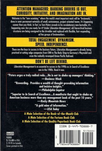 Tom Peters considers the very near future in which the business organization as we know it will no longer exist, and shows how to meet this challenge. Peters shows how two primary forces - globalization and information technology - are bringing about a major transformation in the history of business. To meet the challenges of the future, managers must change in equally drastic ways if they are to succeed. Using scores of case studies from all corners of the world's economy, Peters shows that as products multiply, speed and flexibility are becoming of paramount importance and new units will usurp traditional management structures, liberating individuals.