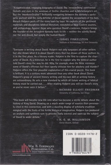 Biblical tradition portrays King David as an exceptional man and a paragon of godly devotion. But was he? Some scholars deny that he existed at all. Did he? This challenging book critically examines the textual and archaeological evidence in an effort to paint an accurate picture of one of the Bible's central figures.A leading scholar of biblical history and the ancient Near East, Baruch Halpern traces the development of the David tradition, showing how the image of David grew over time. According to Halpern, David was the founder of a dynasty that progressively exaggerated his accomplishments. Halpern's clear portrait of the historical David reveals his true humanity and shows him to be above all a politician who operated in a rough-and-tumble environment in which competitors were ready literally to slit throats.