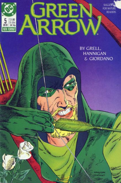 Take an invading horde of Los Angeles gangs in the streets of Seattle, add the native gangs out to protect their turf, stick Green Arrow in the middle of it all and you've got havoc. Part 1 of 2. Written by Mike Grell, with art by Ed Hannigan and Dick Giordano. Cover by Hannigan and Giordano. Suggested for Mature Readers. New Format. Cover price $1.00.