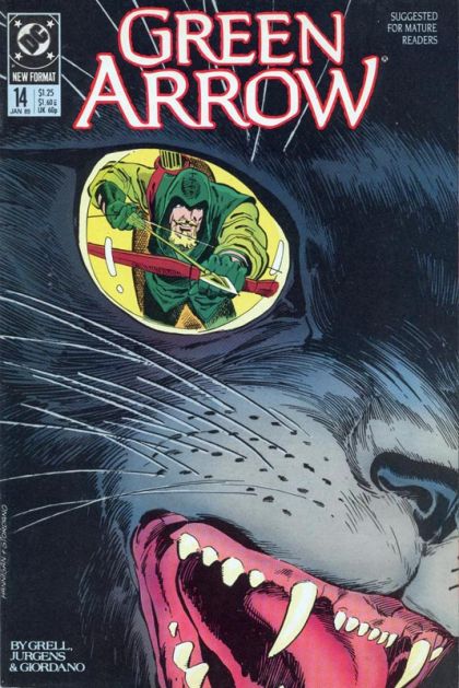 Green Arrow's used to being the hunter...but now he's the one being hunted, on the streets of Seattle. Part 2 of 2. Written by Mike Grell, with art by Dan Jurgens and Dick Giordano. Cover by Ed Hannigan and Giordano. Suggested for Mature Readers. New Format. Cover price $1.25.