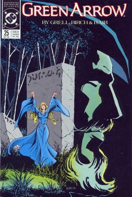 Green Arrow sees more of the sights of England than he bargained for as he travels into Sherwood Forest to help a woman who might be mad...or she might be a witch. Part 1 of 2. Written by Mike Grell, with art by Trevor Von Eeden, J.J. Birch and Michael Bair. Cover by Birch. Suggested for Mature Readers. New Format. Cover price $1.25.