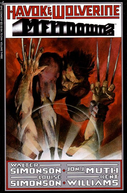 Meltdown: Part 3 of 4 - Written by Walt and Louise Simonson. Havok art by Jon J. Muth and Wolverine art by Kent Williams. Can Havok survive a Wolverine berserker attack long enough to discover why this is happening? 48 pages, FC. Cover price $3.50.