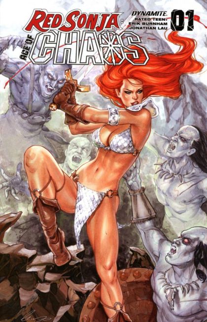 The past meets the present with the future of literally everything at stake! The warrior Red Sonja has a plan to keep freshly killed wizard Kulan Gath from resurrecting himself again - but when the plan backfires, it allows a whole new kind of Chaos! to infest the Hyborean Age! Will these new beings be any easier to deal with than Kulan Gath, or has Sonja called a worse evil to her world? It's the first chapter of a brand-new quest for the She-Devil - and it may be her hardest yet as for the first time ever, Red Sonja meets the badass characters of Chaos!