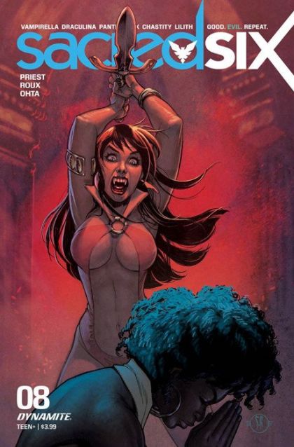 Vampirella is clearly not herself (for reasons we won't spoil here!) and neither is ex-girlfriend Victory, the "new" Draculina who has experienced a genuine religious conversion while spying on the City of Sacred. But can Draculina hide her newfound faith from her cohort of nefarious sisters, which includes a suddenly brutal and demonic Vampirella? Also, continuing this issue: just who is the "half-vampire" agent of chaos called CHASTITY?