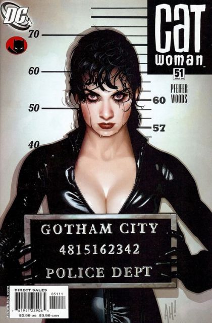 Holly and Karon emerge from a showing of The Rocky Horror Picture Show, and run into Slam Bradley, in town briefly. Black Mask watches nearby. Selina breaks into Wayne Manor and tells Bruce what the Justice League did to her. Interleaved with this is Black Mask, torturing someone. Bruce tries to console Catwoman, but she's completely lost. Is she a villain? How deep did the changes go? Finally, she leaves, and Bruce goes to the cave and places an angry call to the Justice League. Smart Bomb tells his police handler that he can't do the undercover assignment, he can't stand by while Black Mask tortures Holly. Finally, he's ordered to go get her. Catwoman arrives at Holly's place and learns from Karon that Black Mask took Slam, in town visiting. She breaks in and takes an elevator down, arriving to see Smart Bomb cradleing his father, who is severely injuried.