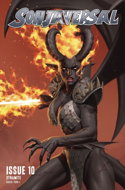 Final issue! The worlds of Purple Sonja, Yellow Sonja, Sonja Noir begin collapsing on themselves. In order to save them, they must learn the humongous secret...what is HELL SONJA's grand design!? By CHRISTOPHER HASTINGS (Deadpool) and PASQUALE QUALANO (Dejah Thoris)!