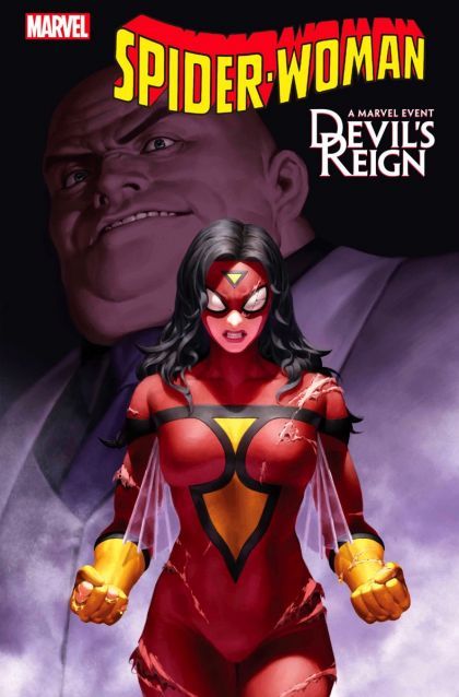 DOWN CAME THE REIGN... • Mayor Wilson Fisk is purging vigilantes from his city, and Spider-Woman is on his list! • Fisk will do anything to bring her down, including going after her loved ones. • It's all on the line for Spider-Woman during DEVIL'S REIGN! RATED T+