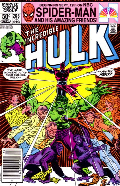 "Devolution!" Guest-starring the High Evolutionary. Story by Bill Mantlo. Art by Sal Buscema. The self made immortal the High Evolutionary (last seen in Marvel Two-in-One #63) seeks death, and only the savage strength of the Incredible Hulk may grant his wish. 32 pages. Cover price $0.50.