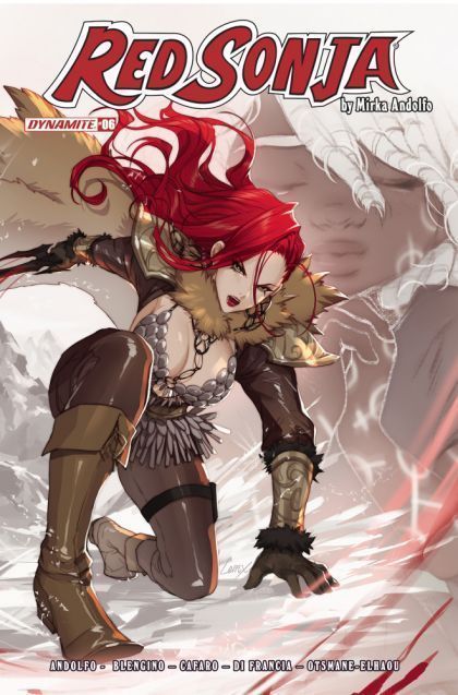 MOTHER, PART SIX. THE DAUGHTER OF FIRE emerges! Every generation, a spirit embodies itself within a vestal, bestowing divine powers to the host. Red Sonja must quickly choose whether to save or destroy the host, and her decision will create a an entirely new path forward... The ongoing adventures continue, from MIRKA ANDOLFO (Sweet Paprika) and GIUSEPPE CAFARO (Sacred Six)!