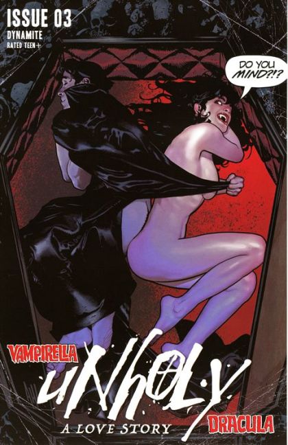 Having completed the blood rite intended to rid her new husband of the Dracula virus, Vampirella returns to America, only to discover the shadow of the vampire lord continues to loom as Dracula asserts himself in assimilating his human host. Complicating matters even more is Vampirella's new mother-in-law, who engineers a confrontation between Vampi's new husband and the soulmate he left behind to marry her, thus triggering the strangest love triangle in Vampirella's history!
