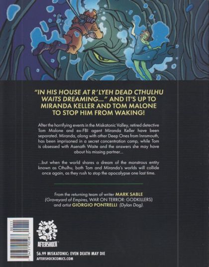PRESTIGE FORMAT ONE-SHOT The hit series returns! The horrifying events in the Miskatonic Valley have torn apart retired detective Tom Malone and ex-FBI agent Miranda Keller. Miranda tries to escape a Deep One concentration camp and a traumatized Tom is obsessed with finding and freeing her. But soon they both start sharing dreams of Cthulhu, a monstrous entity in the South Pacific who will soon awaken and bring about the end of the world as we know it. From the returning team of Mark Sable (Graveyard of Empires, WAR ON TERROR: GODKILLERS) and Giorgio Pontrelli (Dylan Dog).