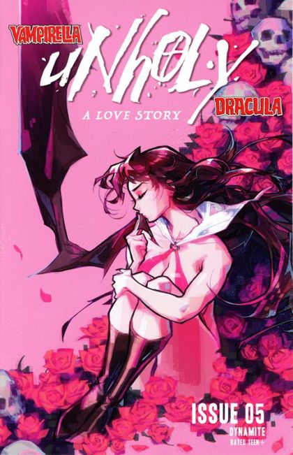 Vampirella's efforts to save the man she loves have completely collapsed. After the shocking revelation concluding our last issue (see below, which Matt absolutely won't spoil here), Vampirella finds herself completely outflanked by the Lord of Darkness! Dracula has fully assimilated his human host while his shadow army, Lumea Urm?toare, prepares Vampirella as a ritual sacrifice-with her mother's blessing! Can this unholy love survive?