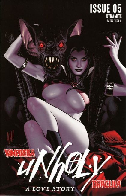 Vampirella's efforts to save the man she loves have completely collapsed. After the shocking revelation concluding our last issue (see below, which Matt absolutely won't spoil here), Vampirella finds herself completely outflanked by the Lord of Darkness! Dracula has fully assimilated his human host while his shadow army, Lumea Urm?toare, prepares Vampirella as a ritual sacrifice-with her mother's blessing! Can this unholy love survive?