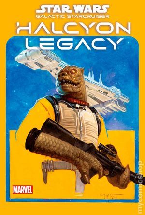"LAST STAND ON THE HALCYON" • Star-crossed lovers who crossed the wrong syndicate try to escape on the Halcyon. • But even in the chaos of the early days of the New Republic, can they evade a murderers' row of bounty hunters stalking them - including BOSSK? • And years in the future, the pirate CRIMSON JACK closes in on the legendary Galactic Starcruiser. RATED T