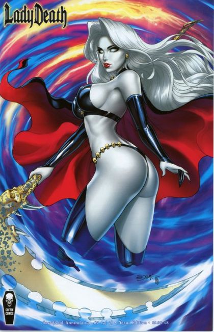 "Deathocalypse," a year-long company-wide event unfolds here! Heroes have fallen. Cities lay under siege. And swarms of progeny fill the skies, blotting out the sun. It seems no one can stand against the awesome power of Insurrectus. Bred to destroy worlds, the ruthless tyrant now sets his sights beyond Earth, commanding vicious hordes to invade every corner of the Infinityverse. Humanity's only hope lies in Hell's most fearsome warrior witch - Lady Death! There can be only two outcomes for our deadly diva: victory or total Deathocalypse!