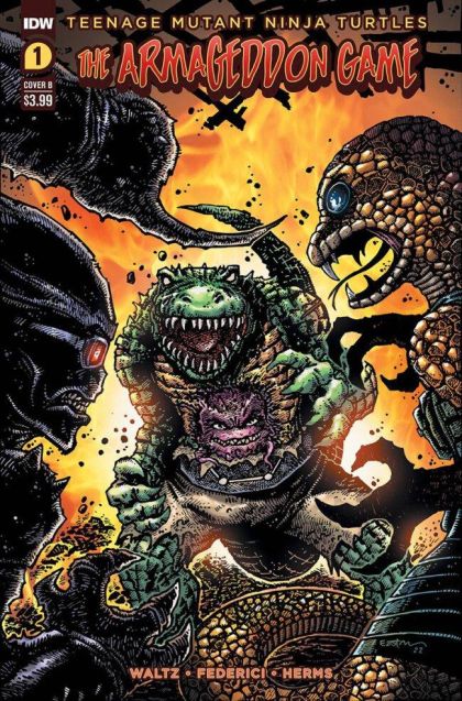 The Armageddon Game Has Begun! Under the leadership of the Shredder, the TMNT begin a dangerous quest to seek out allies against Rat King's trio of terror: LeatherKrang, Baxter Stockman, and Madame Null. It's a mission that will see the Turtles spread out across New York City... and across multiple dimensions! But they better hurry, because their enemies are already on the march, and things are not looking good for Mutant Town while most of our heroes are away. Desperate measures, false flag attacks, mysterious new villains, and unexpected alliances... It all starts here in the premiere issue of the biggest TMNT event of the year!