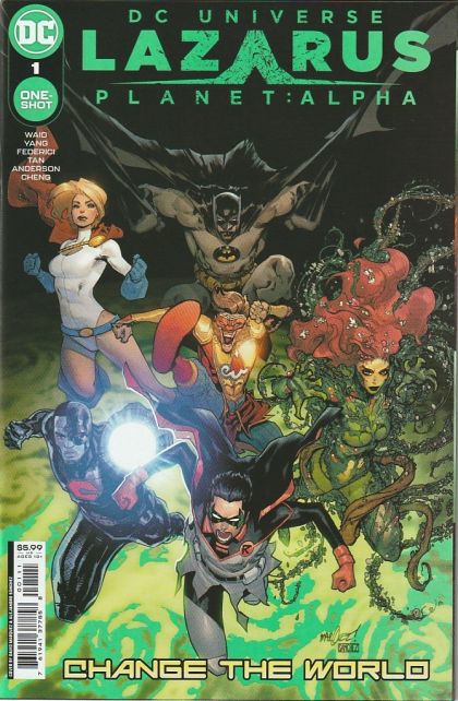 CHANGE THE WORLD. Following the explosive (literally) events of Batman vs. Robin #4, the Lazarus Volcano has erupted, spewing dangerous and transformative chemicals into Earth's atmosphere! As these Lazarus clouds rain down upon the planet, people across the globe begin to develop strange new abilities, watch their already-extraordinary abilities change, and witness a whole host of chaos unlike anything the DCU has experienced before! It's up to Damian Wayne to put out the distress call for whoever can still hear it: come to the ruins of the Hall of Justice and help save the world! Poison Ivy, Power Girl, Cyborg, Batman, and more answer the call...but why could the fate of all life as we know it rest in the hands of...Monkey Prince?