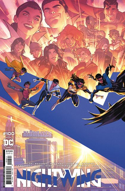 Art by Bruno Redondo, Rick Leonardi, Scott McDaniel, Mikel Janin, and Javier Fernandez. Come join us with big smiles and even bigger celebrations as Nightwing hits its milestone issue #100! Cheer how far we've come by looking through the decades at what has made Nightwing a beloved hero. What better way to celebrate than with familiar friends and artists? Then, with Heartless creating a lair in the heart of Bludhaven to take Blockbuster's throne, Nightwing will follow suit, setting up a headquarters of his own...with the help of some friends who helped make him who he is now, of course!