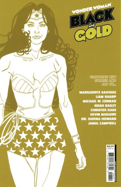 Written by Marguerite Sauvage, Liam Sharp, Christos Gage, Sheena Howard, and more! Art by Marguerite Sauvage, Liam Sharp, Kevin Maguire, Jamal Campbell, and more! Nothing gold can stay including this remarkable celebration of Wonder Woman beautifully presented in her signature colors! It all concludes, featuring our hero saving a life that will in turn save thousands, a superhero climate crisis, a body swap with one of her greatest villains, and more!