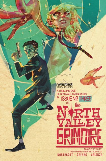 Dennis Menheere's main cover presented with a retro style trade dress to capture the old school James Bond vibes that inspired North Valley Grimoire. SPYCRAFT MEETS SPELLCRAFT in North Valley: a slick, James Bond-style adventure fused with the supernatural suspense of The Magicians. When Calista visits her mother in prison, she makes a shocking discovery about the grimoire ... and as Agent Malek scrambles to cover his tracks, he learns there could be another double-agent inside of FATHER Division.